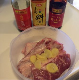 依次加入姜片、盐、料酒、生抽揉搓三分钟,最后加入老抽提色。