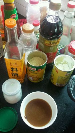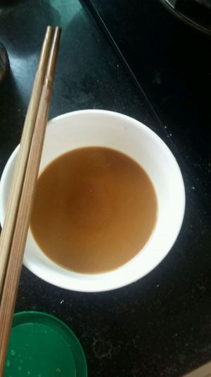 开始调汁用水,生抽老抽,生粉,蚝油,料酒,盐搅拌均匀,不用很多水的。