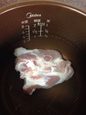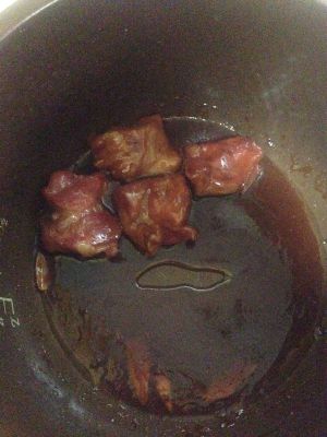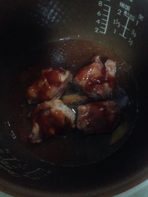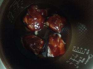 料酒吸收了大概只剩2/3就可以涂上叉烧酱了 我用的是李锦记的 至于多少 也是看个人口味 然后开始使用电饭煲煮