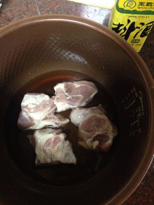 加料酒进去差不多盖过肉就好了 让它浸泡30分钟 15分钟时翻过一面 料酒会被肉吸收 但不是全部哦