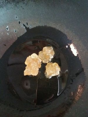 炒锅,凉锅温油,放入冰糖,小火熬化,做成糖色