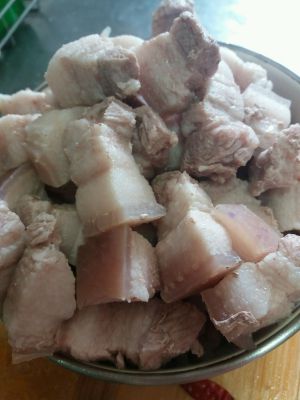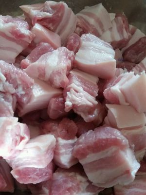 五花肉切成2厘米左右的长方形块