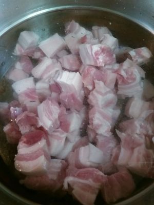 五花肉改刀切块,焯水3分钟