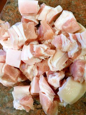 五花肉切大块,冷水下锅,煮开后捞出冲洗干净