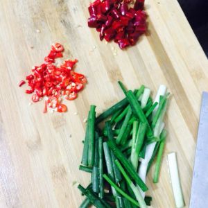 切香葱末,蒜末铺在鱼片上,再铺上一些辣椒面和花椒面,锅中油,油热后淋到刚刚铺的辅料上就大功告成了~