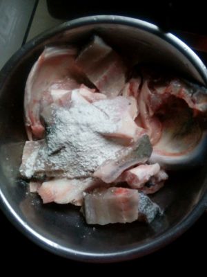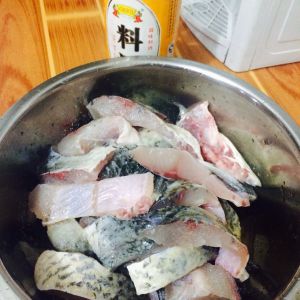把鱼收拾洗净切块,反复清洗,用料酒和盐、淀粉腌制入味