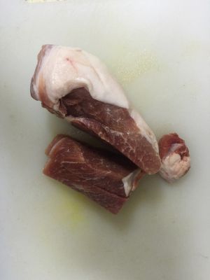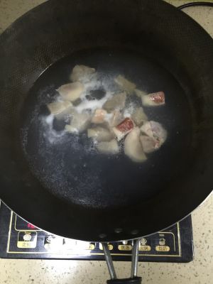 将切好的猪肉快,放到开水中焯一下,变色后捞出