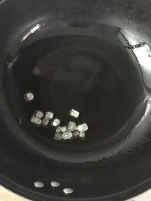 炒锅加油放冰糖,慢慢把冰糖熬化