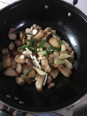然后放入葱,姜,蒜,翻炒一下加入料酒