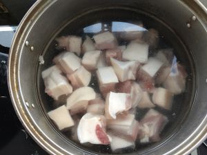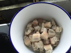 五花肉切块!凉水下锅煮熟!