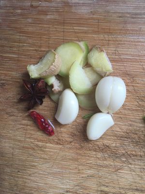 事先准备好蒜姜八角,干红椒~