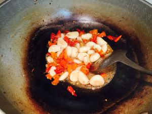 余油炒香大蒜子、干辣椒