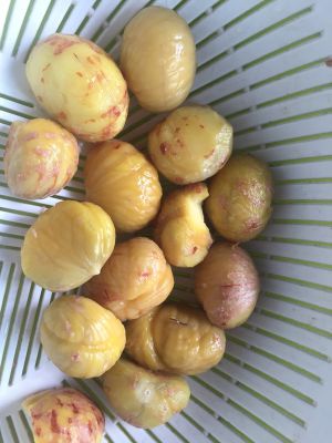 锅内放油加白糖少许再加五花肉和配料翻炒均匀至表皮成微微金黄色,然后加入老抽生抽上色对黄酒去腥,最后加水加板栗大火煮开转中小火慢慢闷