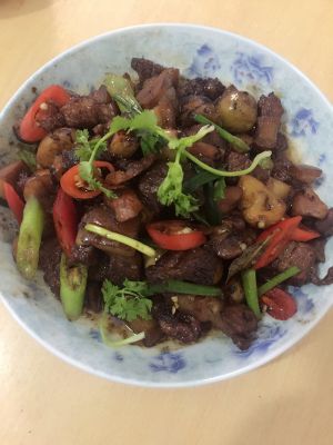 收汁前加入青红椒葱段配色增香,我没放盐酱油就够味了