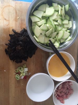 猪肉切片,辣椒胡萝卜切好,姜,葱,蒜切好备用