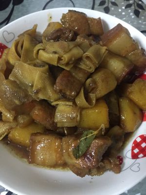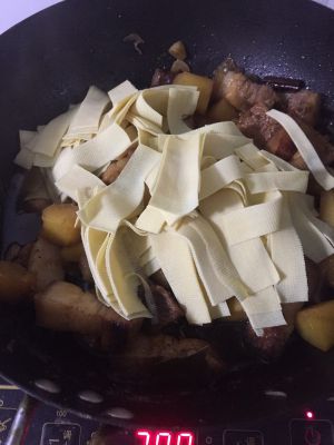 快熟的时候加入豆腐皮,再小火炖3-5分钟