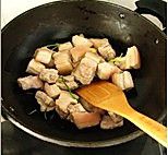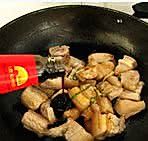 烹入料酒去腥,调入生抽、蚝油炒匀,加适量开水没过肉表面;