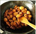 第五步加入生抽和草菇老抽,和水!水要莫过肉哦!