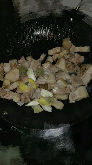 炒锅放油烧至7成热,下葱段姜片煸香,下五花肉煸炒出油;