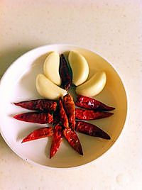 红辣椒在开水里泡5分钟后切丁(或者用新鲜的小米椒),蒜头拍扁剁碎末。