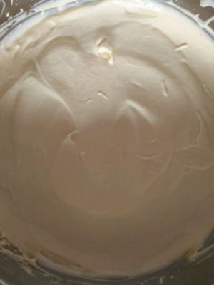 打发的蛋黄糊颜色变浅了,蓬松了。放一旁备用