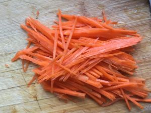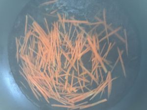 锅中烧开水倒入胡萝卜汆至断生,大约需要2分钟