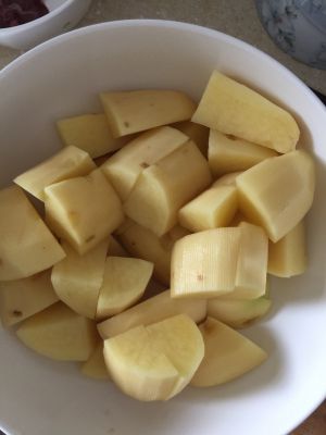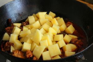 土豆切块,稍微大一点,均匀一些,不然容易炖烂。
