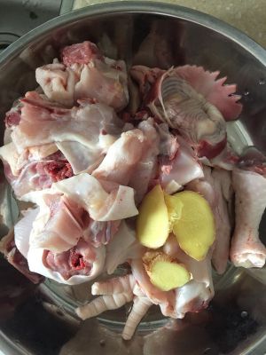 鸡斩块,我一个人哦,所以半只鸡就足够啦,注意选稍微老一点的鸡、炖出来会比较香。
