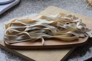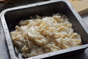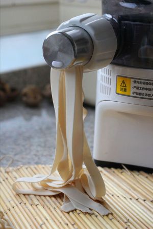 这次做了三缸面(好能吃的感觉啊),210毫升的水,刀头选择的是宽面,从外形上接近传统大盘鸡用的皮带面