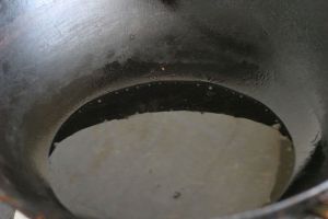 炒锅烧热之后倒入植物油,可以适当多放一些