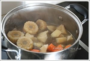 时间到了,加入土豆,胡萝卜,再炖10分钟。