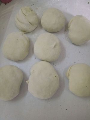 将醒好的面团搓成长条,切成一个个小剂子,再将小剂子擀成长方形放入调好的葱油酱,从底部往上卷然后捏成团。