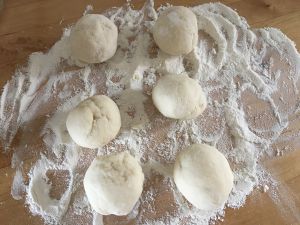 用手掌压扁再用擀面杖擀成圆形,平底锅放油放入擀好的饼煎至两面金黄即可