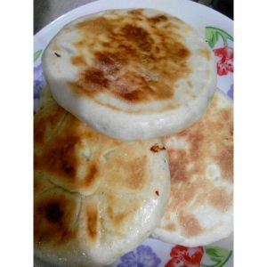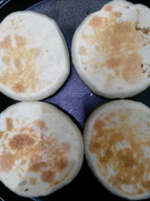 烙至饼皮有金黄色就可以了,勤翻面防止烙糊。差不多是5分钟左右。