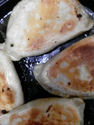 放入电饼档里边。这个是对折做的,像大饺子一样。