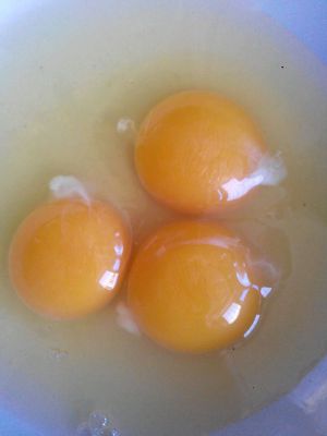 锅里到食用油,油热的差不到,把鸡蛋打散,煎鸡蛋用来做韭菜鸡蛋馅,韭菜切碎,放盐,花椒粉,鸡精,韭菜馅和好。