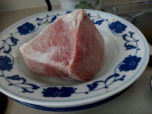 五花肉开水下锅,去浮末,捞出。不要煮太久