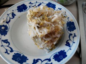 酸菜切丝,清水浸泡五分钟,捞出备用