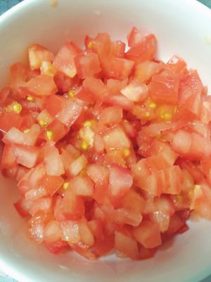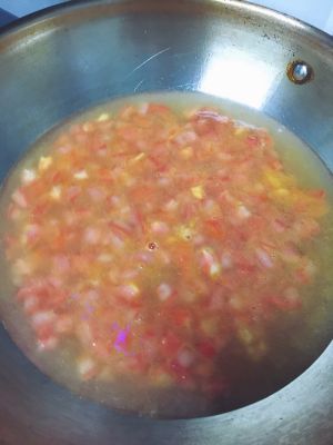 番茄切小丁,有利于熬出番茄汤汁