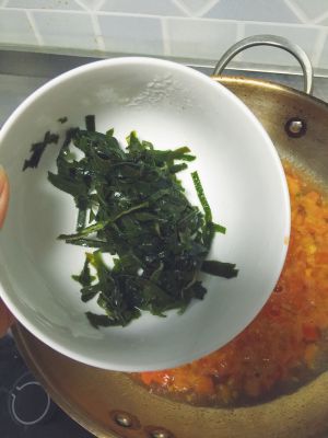 加入提前泡好的干海带。