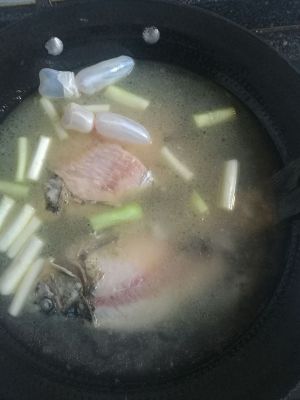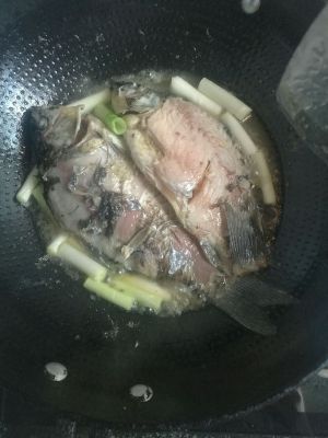 锅里放适量食用油(把锅底薄薄的铺一层即可),煎热后,将备好的鲫鱼煎炸至两面微微发黄 放入拍好的老姜和切好的葱段,至有些许葱姜爆香的味道即可加入清水烹煮鱼汤了