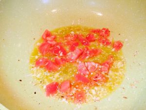 放入切成块的西红柿煸之