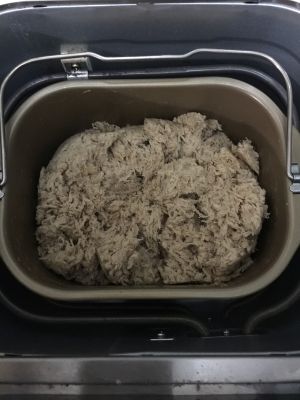 把肉和调料放入面包机内,转到果酱功能键后,面包机就可以开始运作啦