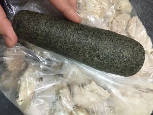 放入食品袋用擀面杖按压,要趁着温热的时候来弄,很容易就散开了。