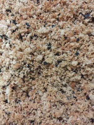 最后完成的时候加上白芝麻就可以了。肉切得比较小,所以成品比较细,下次得大块点儿,不压那么散,相信会更有肉感。细细的比较适合牙不好的老人家和小朋友吃。