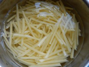 将切好的土豆丝用水投几遍 直到泡的水干净即可