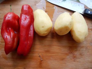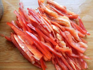 准备好材料,土豆丝,葱切段,青椒切长条,