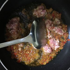 放入豆瓣酱炒香 小火 不要炒糊了