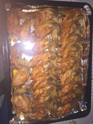 腌好后的鸡腿鸡翅用锡纸包着放入烤箱中180℃以上烤34-40分钟,就可以出炉了!香香的烤翅可以开吃咯!