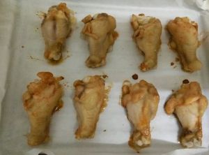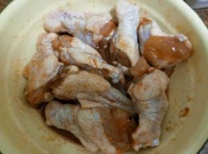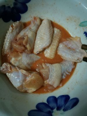 把鸡翅鸡腿沥干后,用牙签把每个鸡腿鸡翅都扎十几下,或是用刀划几个口子,以便能更入味!做好后就把它放去调好的佐料中,均匀的沾上,然后放冰箱冷藏6-8小时,期间把它翻一两次!